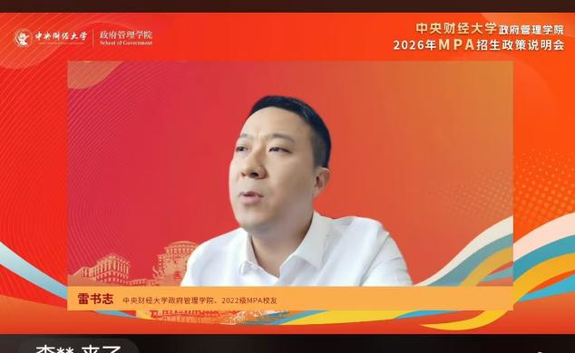 在学习分享环节,2022级MPA校友雷书志深情回顾了在中财的求学经历。他结合自身职业发展瓶颈,阐述了选择kaiyun开云官方网站MPA项目寻求突破的原因。在校期间,得益于名师荟萃的师资队伍和严谨务实的双导师制度,他在专业知识和实践能力上获益良多。他特别提到,项目的特色课程体系和案例教学为其职业发展提供了关键性指导。雷书志表示,kaiyun开云官方网站MPA项目不仅拥有特色鲜明的“财经+治理”烙印,更孕育了卓越的财经管理人才群体,校友网络资源丰富。他总结道,中财MPA学习是人生中一段宝贵的成长旅程,这里不仅是知识传承的殿堂、创新思维的孵化器,更是一个充满归属感的温暖集体,并热忱欢迎广大考生报考。