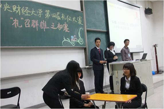 10月16日,第四届校园礼仪大赛暨全国外交外事礼仪大赛校内选拔赛暨全国外交外事礼仪大赛校内选拔赛初赛进行。比赛由社会发展学院和国家大学生文化素质教育基地联合举办。
