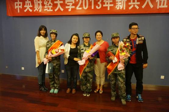 欢送会第一个环节便是雷媛同学作为一名新兵发表自己的感想与希冀。身着一袭迷彩军装的她,显得那么精神与自信,充满了力量。同时,她也表现出一向的沉着与从容,落落大方。雷媛同学首先表达了自己对中财这个大家庭一年来给予自己关爱的衷心感谢,也传达了内心渴望回报学校、让学校以她为荣的愿景。现场观众都能从她的真挚话语中,深切感受到一种侠骨柔情——渴望报效祖国的言语展现她巾帼不让须眉的豪情壮志;温婉淡雅的表情又让现场感受到女兵的飒爽英姿。那一刻,所有人都被这种富有激情而又充满温暖的场面打动了。
