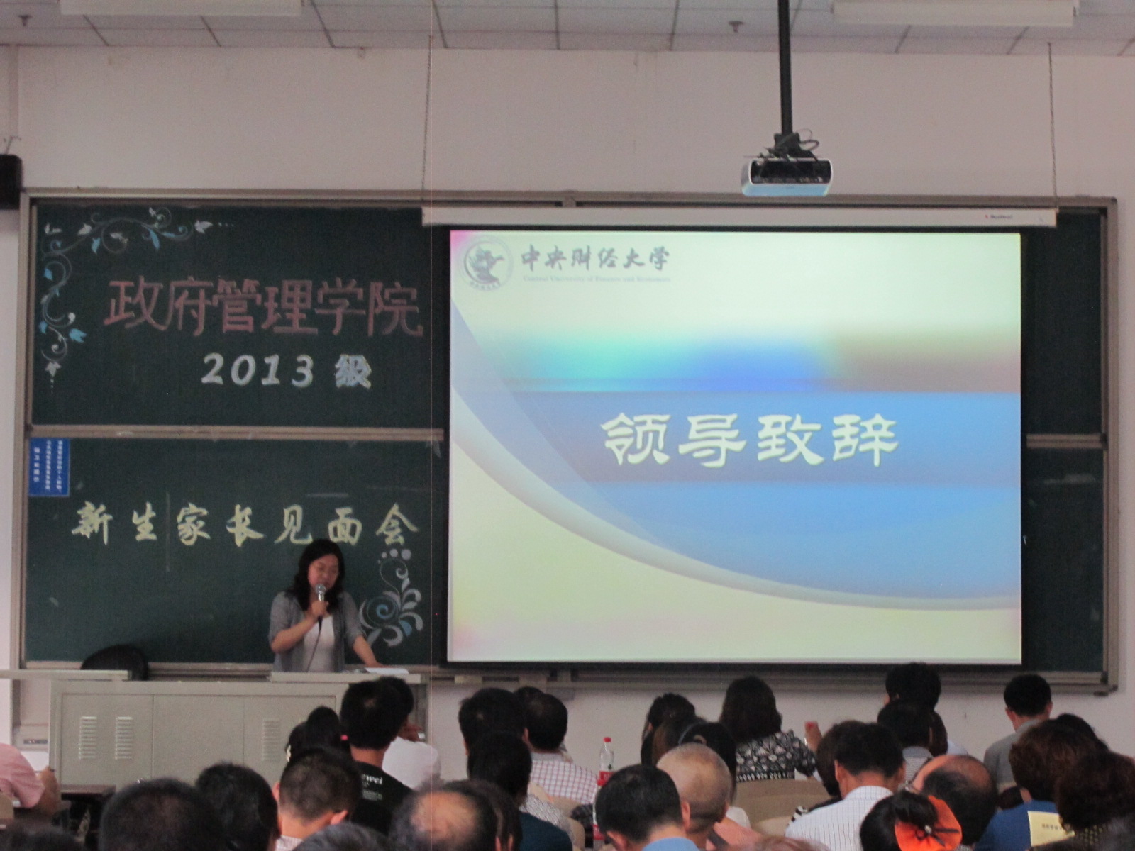 接下来在党总支书记吕丽“我的中财我的梦”的讲话中,新生及家长关于切实的大学生活问题有了清晰的了解和深刻的领悟。总书记强调定位、目标的重要性,明确学习生活的特点,真挚地给出几点建议,使大家受益匪浅。