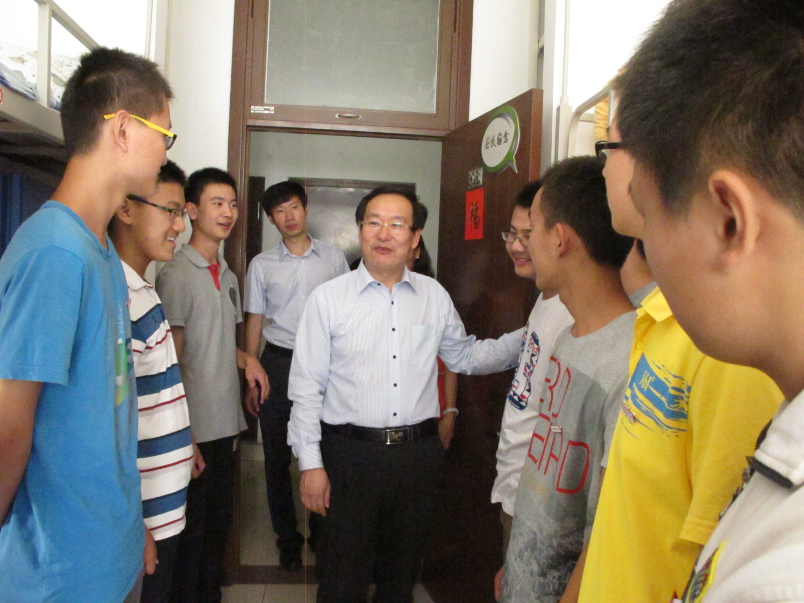 副校长赵丽芬、校团委书记高杰、kaiyun开云官方网站院长赵景华、副院长于鹏、学生处主任张小林等一行人首先走进宿舍1号楼227寝室,亲切地询问大家将近一周来的适应情况。看到领导亲自来访,同学们都表现出积极、高昂的兴致,用自信的声音回应领导。接着,在与同学的交流中,赵丽芬副校长提到了大家关心的学习问题,指出大学期间仍要以学习为重,做好考取研究生或保研的准备工作。同学们频频点头,也立志大学期间要取得一番成绩。在另一间寝室,校长、院长关切地询问同学们各自的家乡。大家五湖四海相聚中财、相聚政管,难能可贵。几位土家族、藏族等少数民族的同学也纷纷表示请领导放心,会努力学习、努力工作,与大家打成一片。男生那边,学院部分帅气阳光的小伙子们在宿舍2号楼208寝室热烈欢迎院长一行人地前来。赵景华院长热情地向大家问好,看到新一级年轻人为kaiyun开云官方网站注入新的活力,他激动地拍着新生的肩膀,诚挚希望大家尽快适应大学生活,开启未来新篇章。