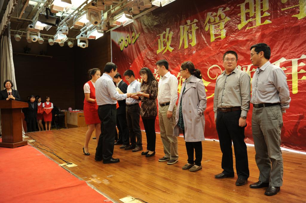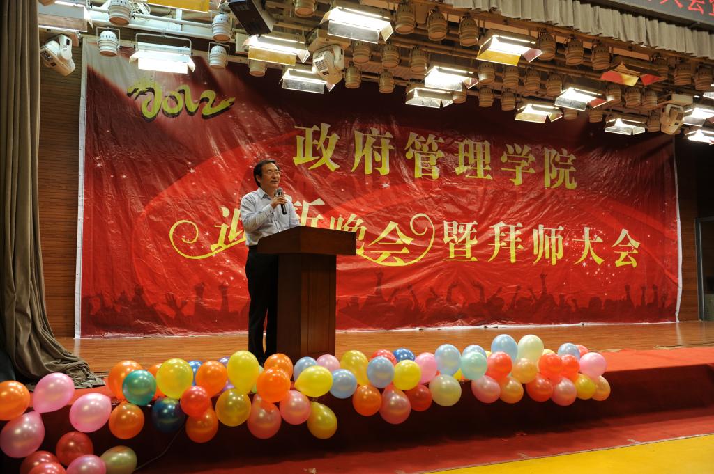接下来,在酷炫的开场舞煽动下,迎新晚会正式拉开帷幕。刚强的军魂操与柔情的咏春舞形成强大视觉冲击,歌曲《我爱政管》瞬间点燃大家的热情,high翻全场。全场洋溢着青春的热情和年轻的跳跃。激情与感动巧妙融合。在院长抽奖环节里,看着6位同学感激地接过赵院长所赠的宝贵图书,大家都深深感动着院长对弘扬中国文化的殷切期盼和对同学们的用心良苦。感动持续绵延,《政管欢迎你》的歌词飘扬,传唱出学长学姐对12级学弟学妹的热情欢迎与诚挚祝福,那一刻,政管就俨然已成为一个大家庭,温馨而甜蜜,情谊之花瞬间开放。接下来,在师生交流环节中,老师以温柔的微笑和幽默的言辞瞬间融入各位同学,闲聊过程中,坚定、自信悄悄浮现在大家年轻的脸庞上。最后在大家的掌声中和快乐的氛围里,晚会圆满结束。通过本次典礼举行,新生消除了初入学的焦躁与不安,整个学院的凝聚力,向心力增强,大家对未来开始充满自信与斗志。