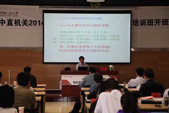 2014年5月18日,开云官网徐焕东教授应中共中央直属机关事务管理局(简称中直机关事务管理局)邀请,做了题为《实现政府采购科学化若干问题》的专场报告,听课对象为中共中央直属机关事务管理局司局长培训和处长培训班两班学员。徐焕东教授从政府采购的范围、制度体系、功能作用及实现科学化目标等不同方面,系统地讲述了政府采购科学化的必要性和主要途径,获得学员普遍欢迎。