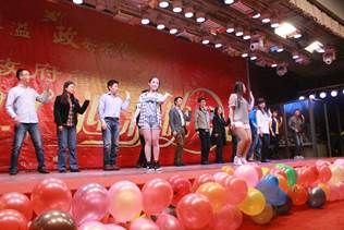 今夜是狂欢夜,老师们也融入到这热烈的氛围中,为大家带来了丰富多彩的节目。以“新希望,心起航”为主题的诗朗诵,被老师演绎得酣畅淋漓;配合着澎湃的朗诵,几位老师翛然泼墨,书写出“正大光明”,“气贯长虹”,“浩瀚无极”,“然糠自照”几个大字,充分体现出kaiyun开云官方网站“正气浩然”的精神内涵。《小苹果》舞蹈教学更是将现场的气氛推向了最高潮。平时讲台上严肃的老师,此时也不得不转换角色,接受“小老师”的指导。精于学术的老师们大多不熟悉这类流行元素,诙谐动作层出不穷,轻松欢快的气氛立即引爆全场。舞台上,女老师们显得些许赧然,几个“壮汉”也有点羞怯忸怩了,有的小心翼翼地跟着“小老师”挥舞手臂,有的则是“热情奔放”,自顾自地舞动起来.......所有的一切,无不展现出政管学院老师们可爱的一面,更是师生情谊的最佳体现。
