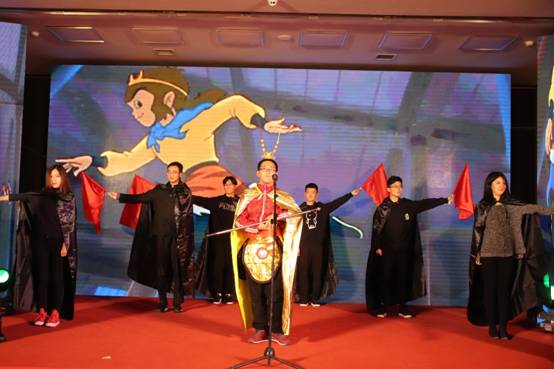 《追梦》的音乐刚刚散去,耳边又响起了熟悉的旋律,这次是国政17班的节目《鎏金岁月2:忆童年》。“葫芦娃,葫芦娃,一根藤上七朵花······”,熟悉的旋律在耳畔回响,葫芦娃重出江湖,配上轻松而又略带金属颗粒感的配乐、生动活泼的动作和精心剪辑的动画片剪影,让人眼前一亮。旋律一转,《通天大道宽又阔》的音乐响起,美猴王震撼回归,刘思远同学扮演的孙大圣惟妙惟肖,独家技能耍棍的放送、试比天高的雄姿英发和高亢嘹亮的歌声收获台下观众喝彩连连。画风又一转,这次是熊出没的再现,轻快的旋律,萌版的布袋熊;这些都把人拉回了我们尚且懵懂无知的时光,鲜活了回忆,照亮了光阴。