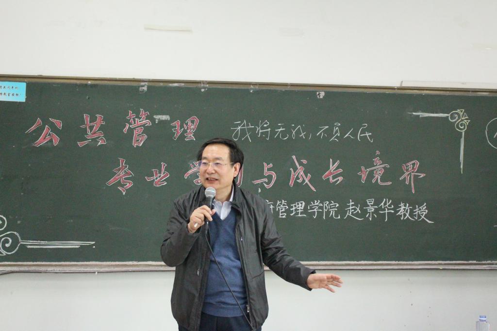 2019年3月27日下午2点,kaiyun开云官方网站院长赵景华教授在主教308室为2018级全体本科生作题为“公共管理:专业学习与成长境界”的专题演讲,院团委副书记、2018级辅导员刘家琦老师主持此次讲座。