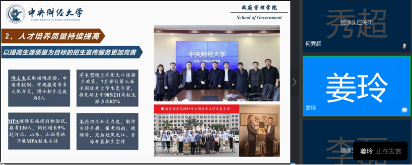 姜玲院长随后进行汇报,指出在习近平新时代中国特色社会主义思想的指导下,学院改革稳步推进,发展步伐不断加快:一流学科建设加速推进,人才培养质量持续提高,科学研究实力稳步提升,人才队伍建设不断优化,国际合作渠道更加多元,制度办法建设深化推进,师生获得感提升增强,学院文化氛围愈加浓厚。在总结学院过去一年取得的成绩后,姜玲院长继续向大会汇报了学院发展中存在的不足和改进方向,表示领导班子将继续努力,直面问题,着力提升管理服务能力,为学院谋发展、为师生谋幸福。