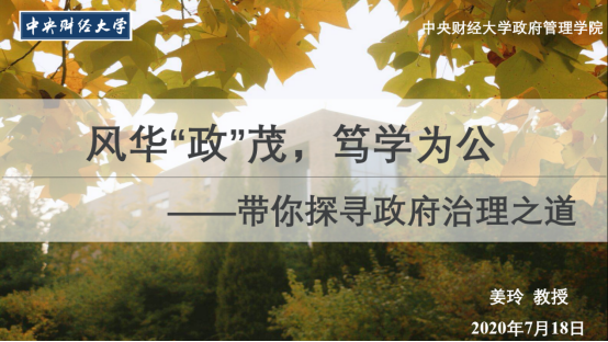 姜玲院长致辞并作专题讲座,她首先对营员们的“云”参营表示热烈欢迎。她从kaiyun开云官方网站的初心与使命、研究生的培养特色与优势、学校校园文化生活和毕业生就业深造渠道等方面展开讲解,重点强调公共管理的初心和使命、公共价值的引领与学生战略思维和领导能力的培育。最后,姜玲院长对营员们提出希望并表达祝福,希望他们在接下来的考核中,能够充分发挥、展现风采。