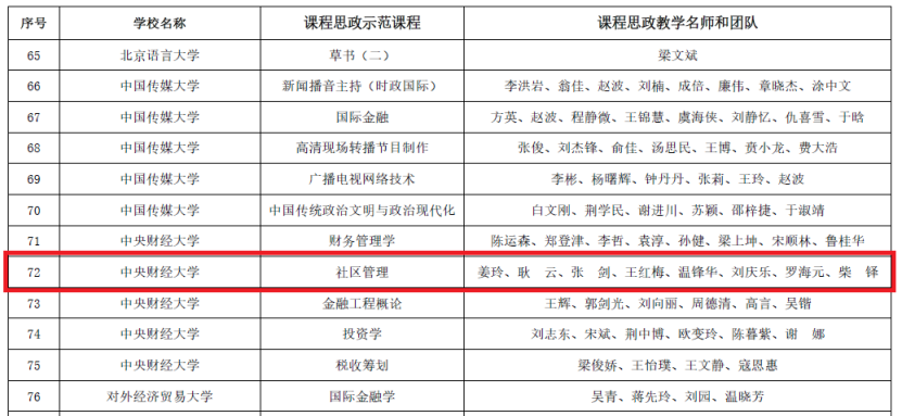 近日,中共北京市委教育工作委员会和北京市教育委员会发布了《关于公布课程思政示范项目名单的通知》(京教函〔2022〕55号),我校推荐的5门本科课程成功立项。其中,开云官网《社区管理》获评北京市课程思政示范课程,姜玲教授被认定为北京市课程思政教学名师,其带领的教学团队被认定为北京市课程思政教学团队,团队成员包括耿云、张剑、王红梅、温锋华、刘庆乐、罗海元、柴铎七位老师。