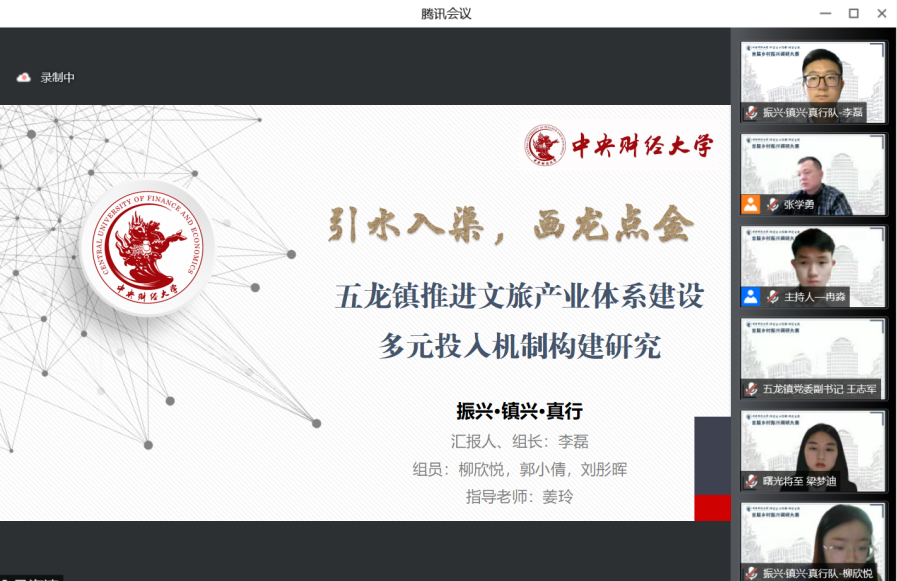 5月26日下午,我校“百年征程风华时 乡村振兴在路上”第一届乡村振兴调研大赛决赛通过腾讯会议云端举行。经初赛、复赛以及学术不端检测,9支队伍从44支参赛队伍中脱颖而出,进入决赛答辩。决赛中经过参赛者汇报、评委老师提问、点评和打分环节,开云官网2021级硕士研究生李磊、柳欣悦、郭小倩、刘彤晖4名同学在姜玲教授指导下完成的调研报告“引水入渠,画龙点‘金’:五龙镇推进文旅产业体系建设多元投入机制构建研究” 获得三等奖。
