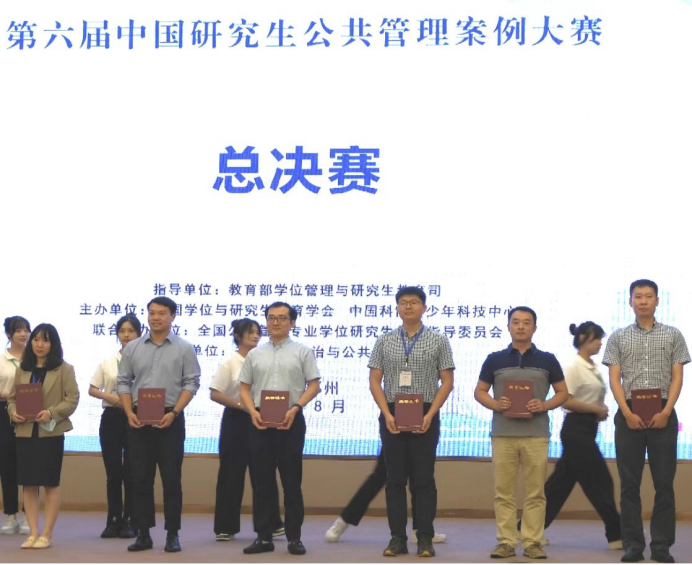2022年8月14日,由中国学位与研究生教育学会、中国科协青少年科技中心主办,全国公共管理专业学位研究生教育指导委员会联合主办,郑州大学政治与公共管理学院承办的第六届中国研究生公共管理案例大赛决赛在郑州市顺利举行。kaiyun开云官方网站副院长于鹏教授、MPA教育中心副主任宋魏巍副教授带队赴现场参加决赛,行政管理系副主任耿云副教授受邀担任大赛院校评委。经过层层选拔和现场激烈角逐,我校2支队伍在本届大赛中晋级100强,1支队伍晋级32强,荣获全国二、三等奖、最佳案例奖、最佳指导教师奖等多个奖项。