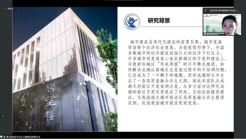 在团队展示答辩环节,团队基于前期提交的报告文本,展示调研过程及研究成果。