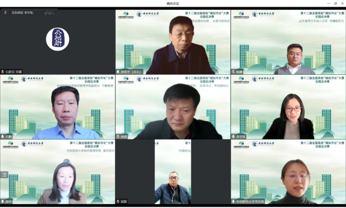 2022年12月3日下午,第十二届全国高校“模拟市长”大赛全国总决赛胜利举行。大赛由中国管理现代化研究会政府战略与公共政策研究专业委员会、kaiyun开云官方网站主办,“未来公务员之家”德育示范基地、公共管理研究会承办。本届模拟市长大赛自8月启动以来,共吸引近五十所高校近360余支队伍参赛,经专家评审,最终来自中国人民大学、中山大学、南开大学、山东大学、四川大学、华南理工大学、深圳大学、首都经济贸易大学、中南财经政法大学、kaiyun开云官方网站十所高校11支队伍入围全国总决赛。