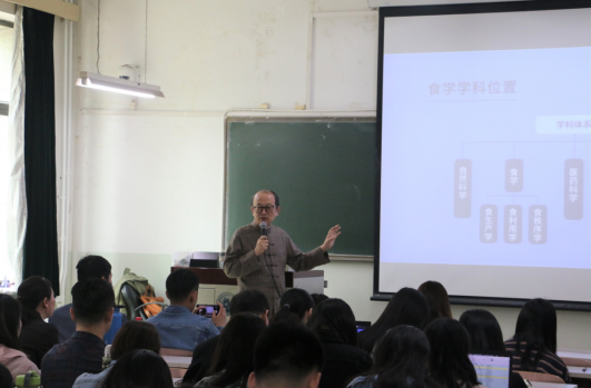 刘广伟院长首先从食学定义出发,通过现场提问启发同学们思考,与大家共同探讨食学研究对象及范围。他分析食学研究对象是人与食物之间关系、人类食事问题、人类食事认识及其规律。总结出食学是食物生产、利用及秩序的学科,并从人类文明的“六维度”与食事关系的分析得出食事乃人类文明之源的结论。