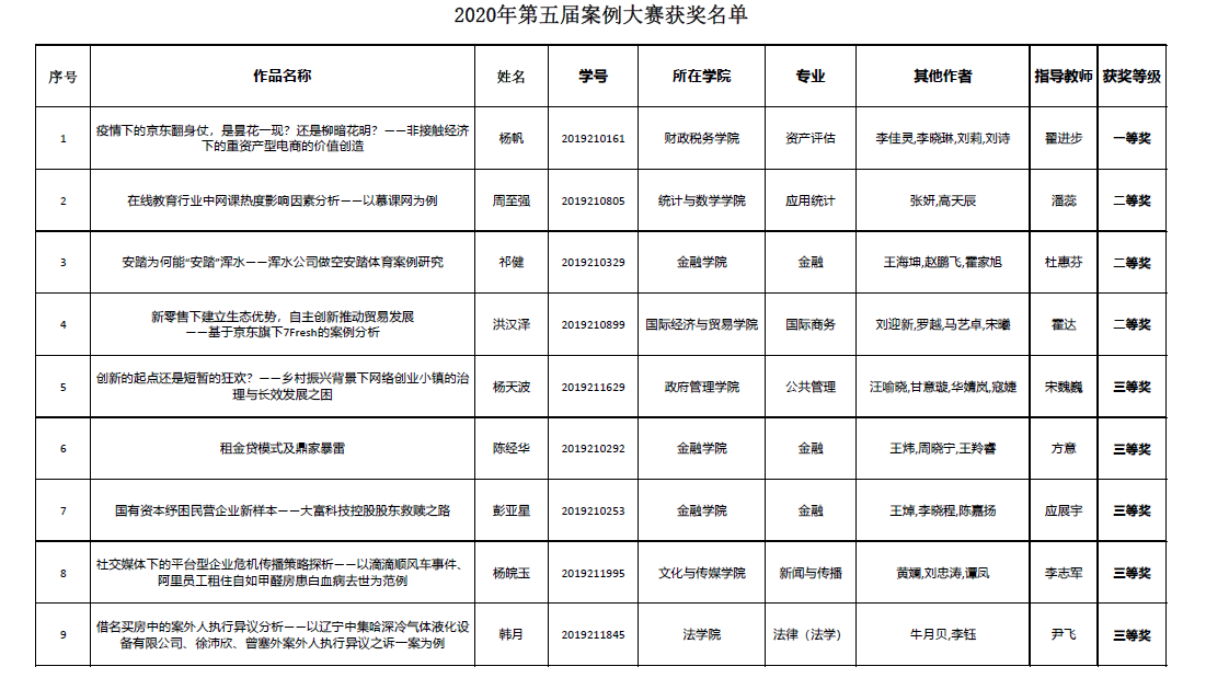 2020年6月23日,第五届kaiyun开云官方网站专业学位研究生案例大赛决赛在线举办,来自kaiyun开云官方网站、财政税务学院、金融学院、国际经济与贸易学院、统计与数学学院、法学院的9支队伍进入决赛。由宋魏巍副教授指导,2019级全日制MPA杨天波、汪喻晓、甘意璇、华婧岚、寇婕五位同学撰写的案例成功晋级决赛并荣获三等奖。