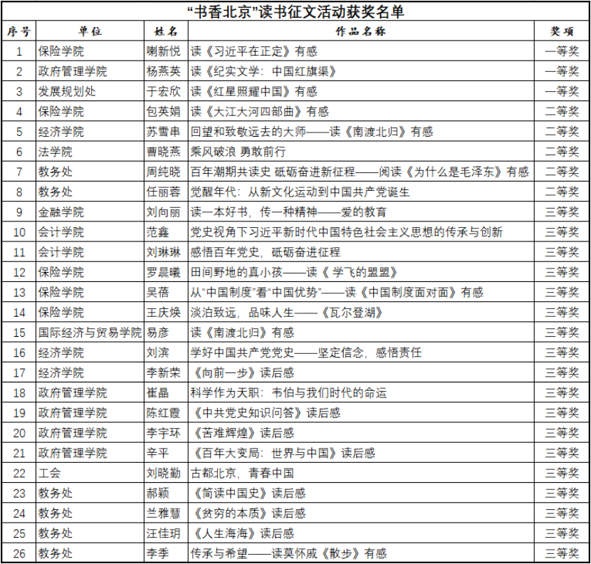 为庆祝2021年三八妇女节,推动书香中财建设,把党史学习融入读书活动中,3月1日,校工会开展了“以劳动圆梦,以奋斗起航,书写巾帼华章”为主题的系列活动,其中首次在我校举办了女教职工“书香北京”读书征文活动。活动开展后,开云官网工会积极响应,组织院系女教职工积极参与。