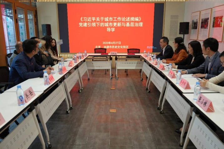 4月27日下午,kaiyun开云官方网站专题读书班成员、党委理论学习中心组(扩大)一行走访北京宣房大德置业投资有限公司(以下简称“宣房大德”)。围绕“党建引领下的城市更新与基层治理”主题,开展学习贯彻习近平新时代中国特色社会主义思想主题教育联学联建。联学中,宣房大德规划前期部副经理陈庆红女士详细汇报了党建引领法源寺历史文化街区城市更新项目的成功案例,宣房大德充分履行国企社会责任,展现国企责任担当,围绕服务首都“四个中心”建设,以改善民生福祉、保护历史文化、完善街区功能、提升街区活力为核心目标,坚持党建引领、坚持联建联动、坚持为民服务、坚持机制创新,实现了法源寺历史文化街区的健康发展。学院MPA教育中心副主任、城市管理系温锋华副教授作《习近平关于城市工作论述摘编》领学导读。他谈到,习近平总书记关于城市工作的重要论述,立意高远,内涵丰富,思想深刻,明确了城市发展的价值观和方法论,深刻揭示了中国特色社会主义城市发展规律,深刻回答了城市建设发展依靠谁、为了谁的根本问题,以及建设什么样的城市、怎样建设城市的重大命题,为新时代做好城市工作指明了前进方向、提供了根本遵循,深入系统学习《习近平关于城市工作论述摘编》,对我们更好的理解新时代我国城市工作的方向,结合开云官网实际扎实开展城市更新、城市治理等领域研究具有重要意义。随后,与会人员围绕研学主题开展了深入研讨。姜玲院长发言指出,城市更新不仅是城市开发建设方式的转变,也是城市治理特别是基层治理的进一步深化,是形成有中国特色的基层治理体系的重要部分。于鹏书记发言指出,深化党建引领基层治理,聚焦城市更新重点工作,是全面贯彻落实党的二十大精神和习近平总书记关于城市工作重要论述的生动实践。加强基层党的建设、巩固党的执政基础是贯穿城市更新与基层治理、基层建设的一条红线,要充分发挥基层党组织的领导核心作用,夯实基层社会治理根基,全力打造共建共治共享的基层治理新格局。与会人员先后参观了法源寺历史文化街区红色会客厅、街区智慧停车场、人才公寓共生院落等项目,开展了生动的实地研学。