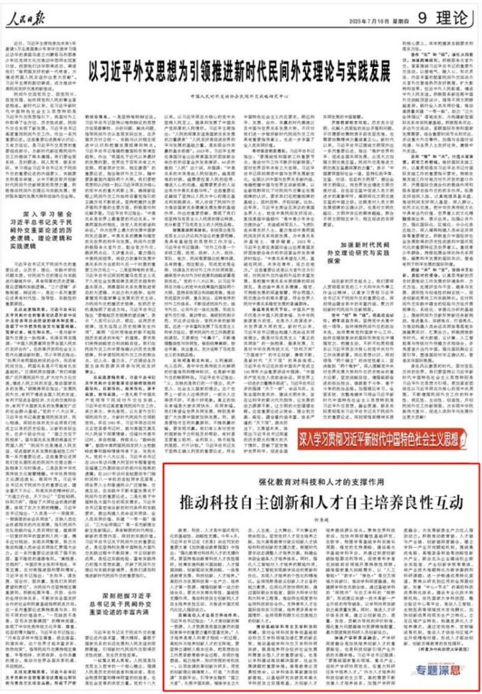 7月10日,《人民日报》理论版刊发开云官网何秀超教授署名文章《强化教育对科技和人才的支撑作用 推动科技自主创新和人才自主...